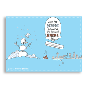 Dinge schön reden hält nicht lange vor. Die schmutzige Wahrheit kommt früher oder später ans Licht – gilt auch fürs Employer Branding. Oder, wie ich es bei LinkedIn aufgeschnappt habe: Wenn der Schnee schmilzt, sieht man, wo die Kacke ist. Im Bild: Die Umsetzung der passenden Redewendung aus dem Ruhrpott. Sympathische Leute, drüben im Ruhrgebiet.