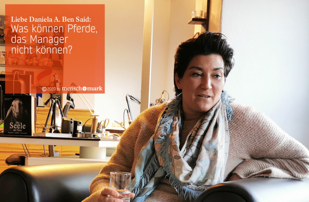 Ich sage ja gerne, Gutes entstehe aus sich selbst heraus. Und so schlägt uns das Leben mehr Brücken, als wir ahnen. Man muss es nur mal machen lassen. Es lenkte meine Aufmerksamkeit also auf Daniela A. Ben Said, die auf 3 Hektar ihre Quid Agis Akademie für Verkaufs-, Vertriebs- und Führungstrainings betreibt und sich zudem als mehrfach prämierte Rednerin einen Namen gemacht hat. Und weil Haltungsfragen im Kontext der Arbeitswelt viel mit Führung zu tun haben, musste diese Frau doch etwas zu erzählen haben. Nun sind mir persönliche Gespräche noch lieber, als die Lektüre ihrer Bücher, und so bat ich um ein Gespräch und hatte Anfang Februar das Vergnügen, Frau Ben Said auf ihrem Hof besuchen zu dürfen. Und zu klären, wer beim Horse Coaching an die Leine genommen wird, Pferd oder Manager?