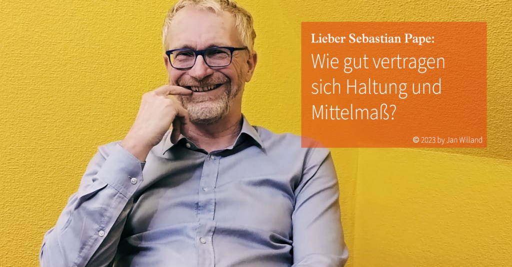 Richtig, auch das ist eine Haltung. Dann würde ich sagen, dass das, was ich unter Haltung verstehe, ein Bewusstsein der eigenen Wirkung erfordert.
